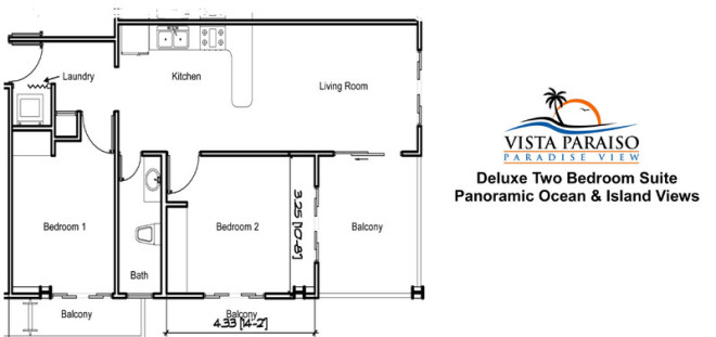 Most hotel "suites" average 150 to 200 square feet. Our apartment-style suites range from 427 to 707 square feet. Here are Vista Paraiso's three spacious floorplans:
